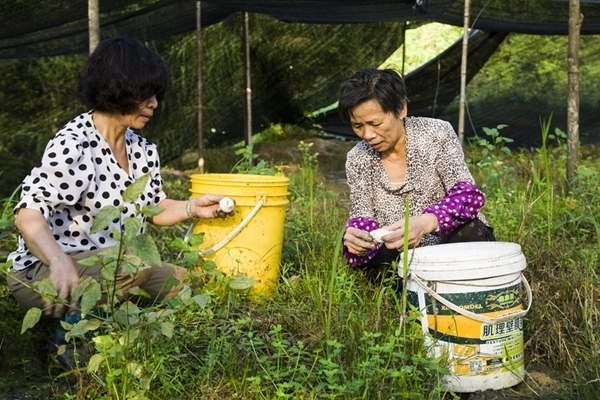 種植戶展示采下的竹蓀。
