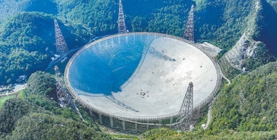 “中國天眼”全景(維護保養(yǎng)期間拍攝)。