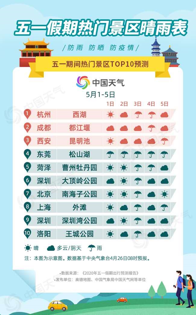 從自駕意愿來(lái)看,預(yù)計(jì)杭州的西湖風(fēng)景名勝區(qū)、成都的都江堰景區(qū)、西安昆明池景區(qū)排名前三,市民自駕前往意愿較強(qiáng),其中,進(jìn)入都江堰景區(qū)需提前
