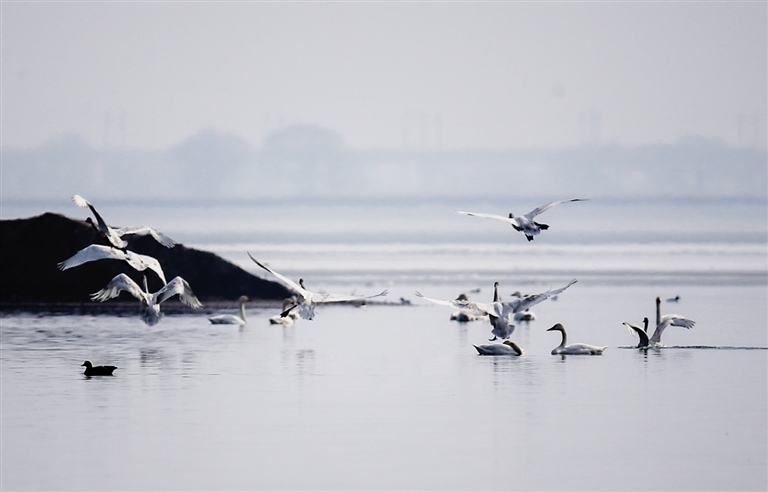 天鵝“組團(tuán)”落腳