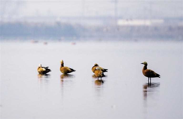 土默特左旗森林公安局副局長王強(qiáng)告訴記者,隨著生態(tài)環(huán)境的日益改善,海流水庫已成為候鳥遷徙途中的重要棲息“驛站”,每年春秋兩季在海流水庫過境的候鳥高達(dá)百萬只,種類涉及天鵝、遺鷗、大雁、蒼鷺等十余種,其中不乏國家一、二級重點(diǎn)保護(hù)動物。更可喜的是,現(xiàn)在海流水庫已經(jīng)有赤麻鴨長期駐留。