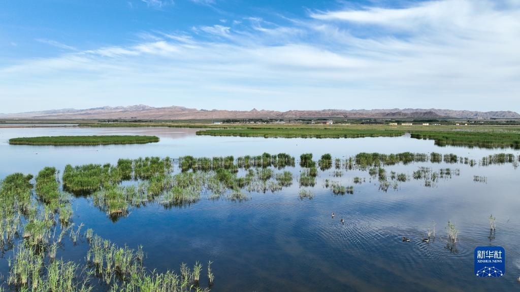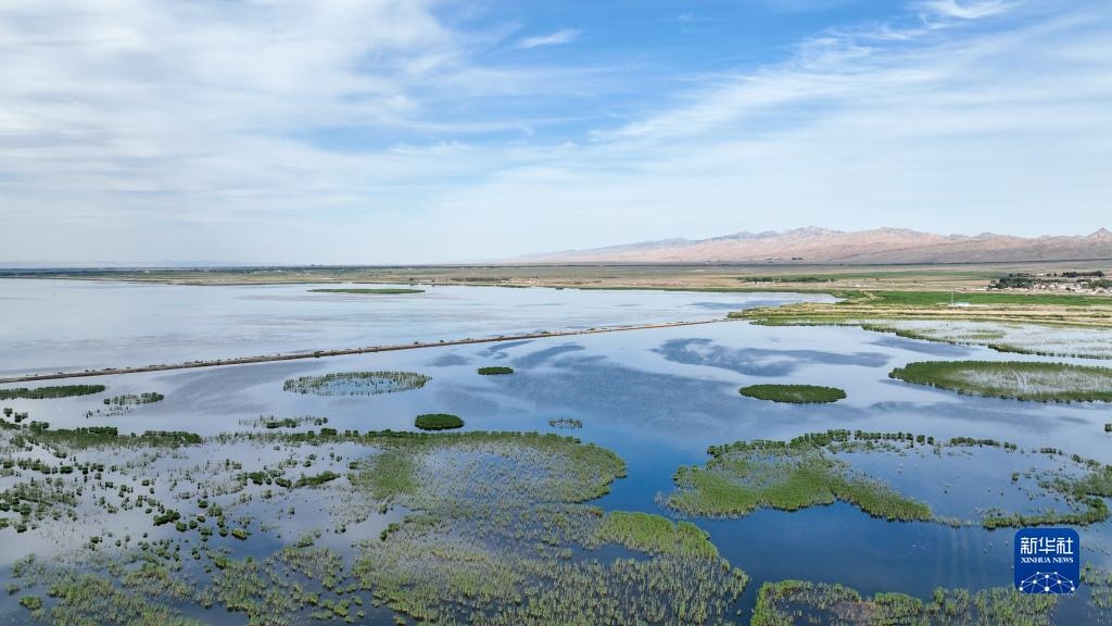 這是6月4日拍攝的位于內(nèi)蒙古巴彥淖爾市烏拉特前旗的烏梁素海(無人機全景照片)。