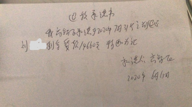 為了不耽誤婚房裝修,劉先生又在居然之家選擇了其他品牌的衛(wèi)浴,并向高經(jīng)理提出退回未付貨的14660元貨款。但高經(jīng)理表示最近手里沒錢,不過,他答應(yīng)劉先生,在7月31日前會全部退還,并且當場寫了一個退款承諾書。