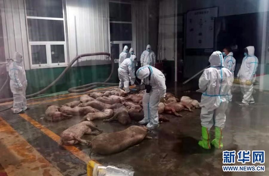 3月21日,工作人員在達(dá)拉特旗病死畜無害化處理中心對(duì)收集的死豬進(jìn)行無害化處理。新華社發(fā)