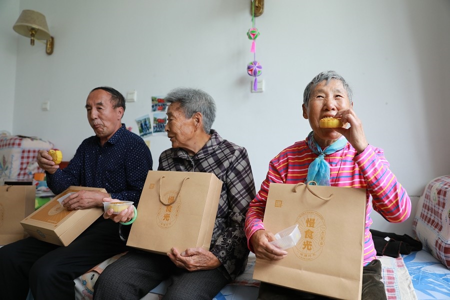老年公寓的老人品嘗月餅