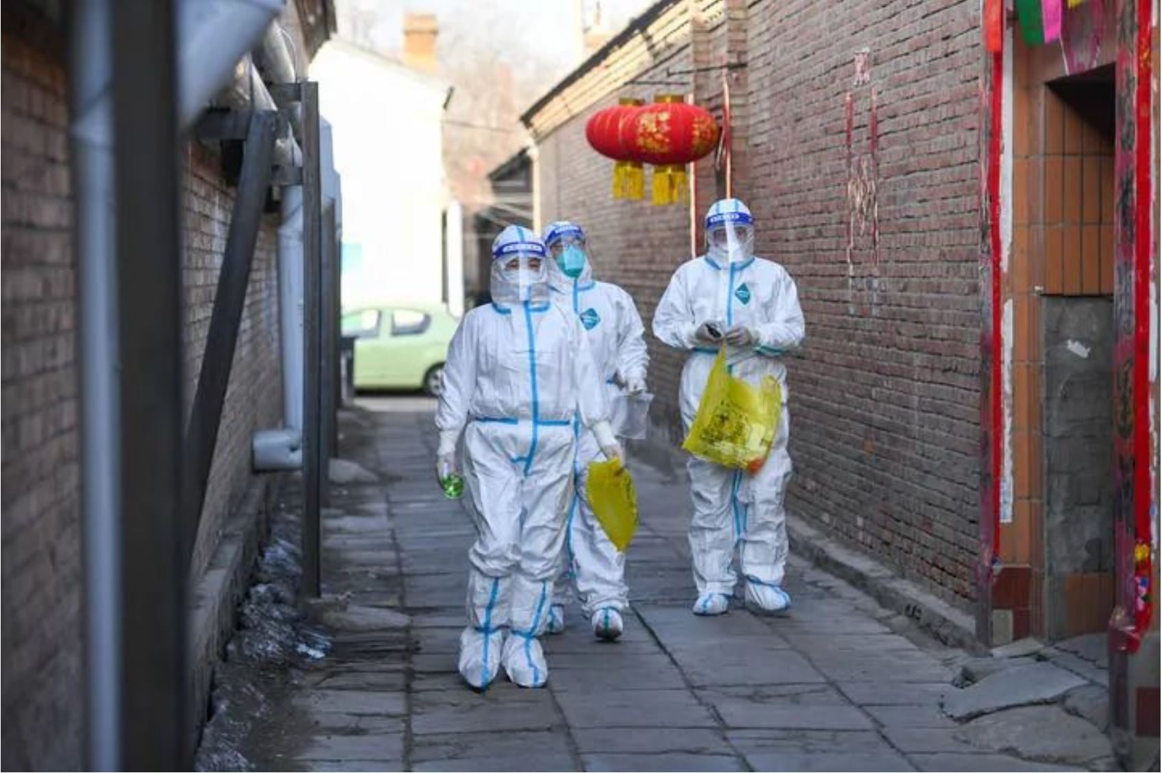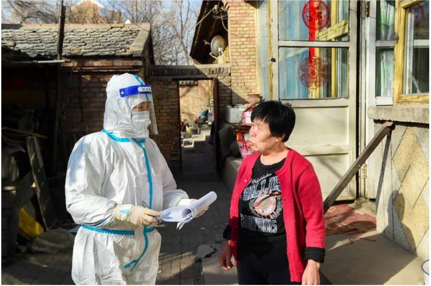 ↑3月6日,在呼和浩特市賽罕區(qū)東瓦窯社區(qū),網(wǎng)格員(左)帶領(lǐng)醫(yī)務(wù)工作者為次密接群眾上門做核酸檢測。
