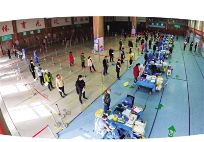 “從3月9日開始,呼和浩特全民健身中心乒羽網(wǎng)保館進(jìn)行全面消殺,10日正式開始接種疫苗。配有大量志愿者現(xiàn)場維持秩序和引導(dǎo)市民有序接種,并針對(duì)一些特殊群體開辟了綠色通道,有效保證疫苗正常接種秩序?!焙艉秃铺厥腥窠∩矸?wù)中心黨支部副書記于首淼說。