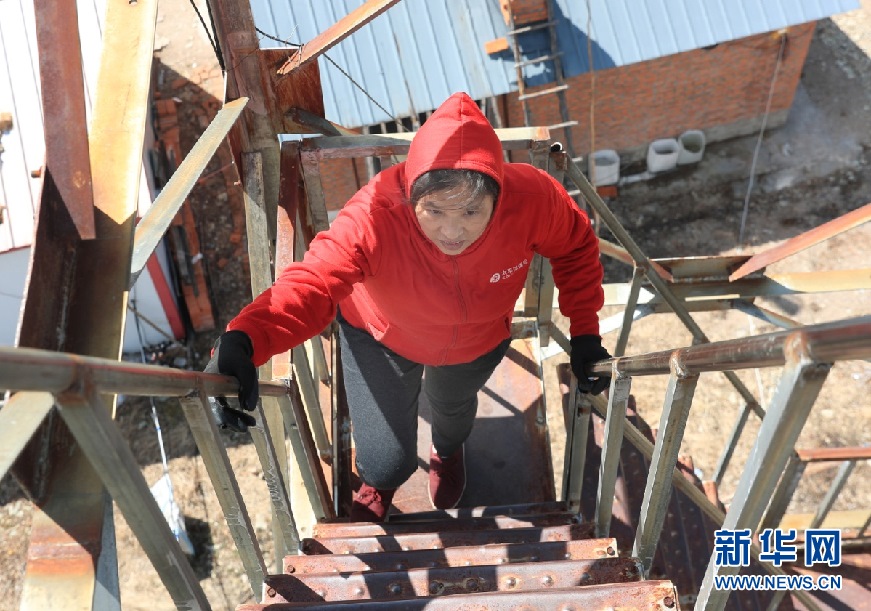周桂波登瞭望塔。新華網(wǎng)發(fā) (欒維敬 攝)