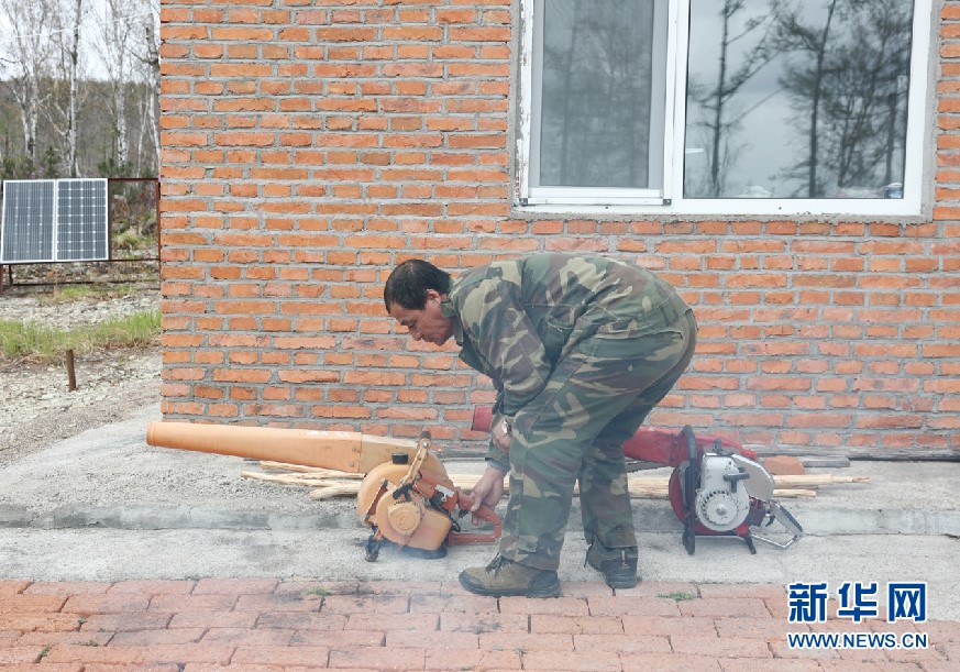 晉顏龍保養(yǎng)風(fēng)力滅火機。新華網(wǎng)發(fā)(欒維敬 攝)