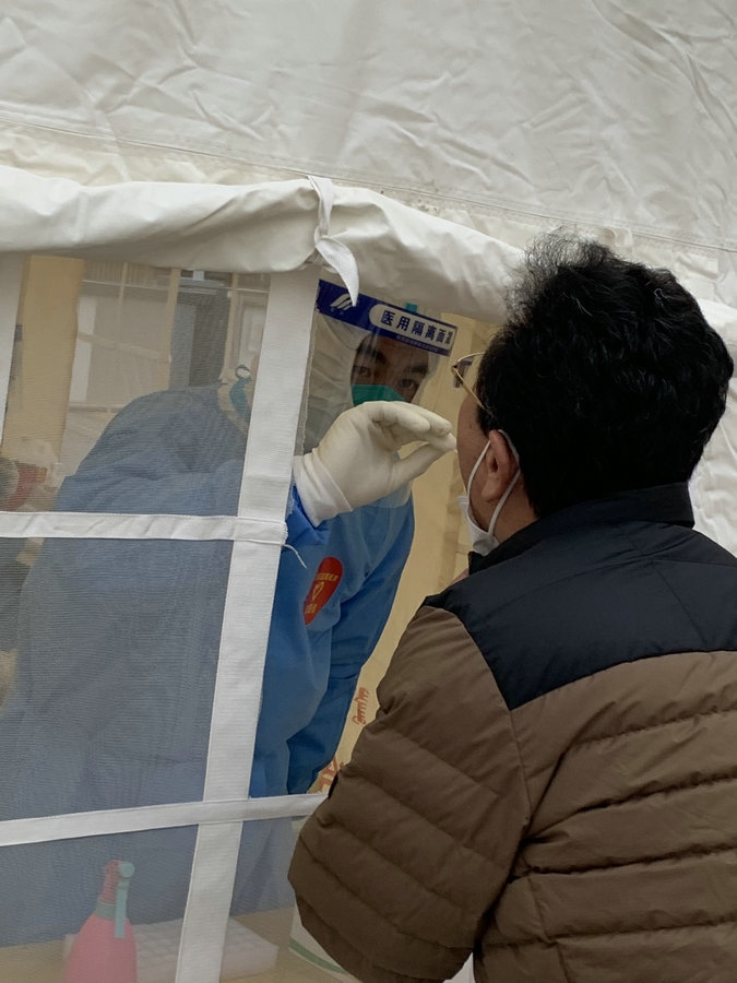 “我加入團(tuán)隊(duì)的時(shí)候,小區(qū)正好出現(xiàn)了陽(yáng)性感染者,這個(gè)時(shí)期是最困難的。我就想,既然選擇了做這個(gè)事,就要義無(wú)反顧。”張小勇說(shuō),“那會(huì)兒都是前一天晚上才通知第二天核酸要怎么采集,我們就當(dāng)晚商量第二天在哪兒采集核酸。因?yàn)楫?dāng)初還沒(méi)有搭帳篷,為了快速采集,有時(shí)還要增加一組核酸采樣人員,我們還要考慮在哪選址。其實(shí)剛開(kāi)始,真的是特別困難?!?/p>