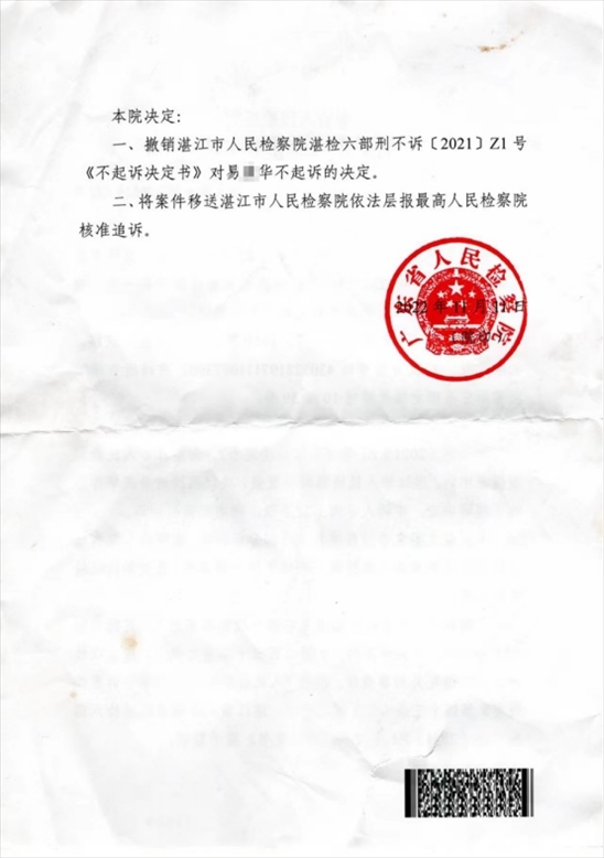 ·廣東省檢復(fù)查“潛逃27年命案嫌犯被不起訴”:撤銷(xiāo),報(bào)最高檢核準(zhǔn)追訴。