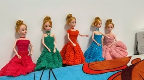 黃小珍的巧手能鉤出各種毛線飾品
