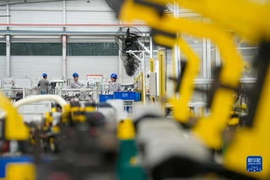 5月4日,在浙江省湖州市長興經濟技術開發(fā)區(qū)一家汽車部件有限公司,工人生產新能源汽車配件。