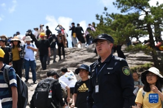 4月20日,秦志平在黃山風景區(qū)光明頂附近進行路段巡查。