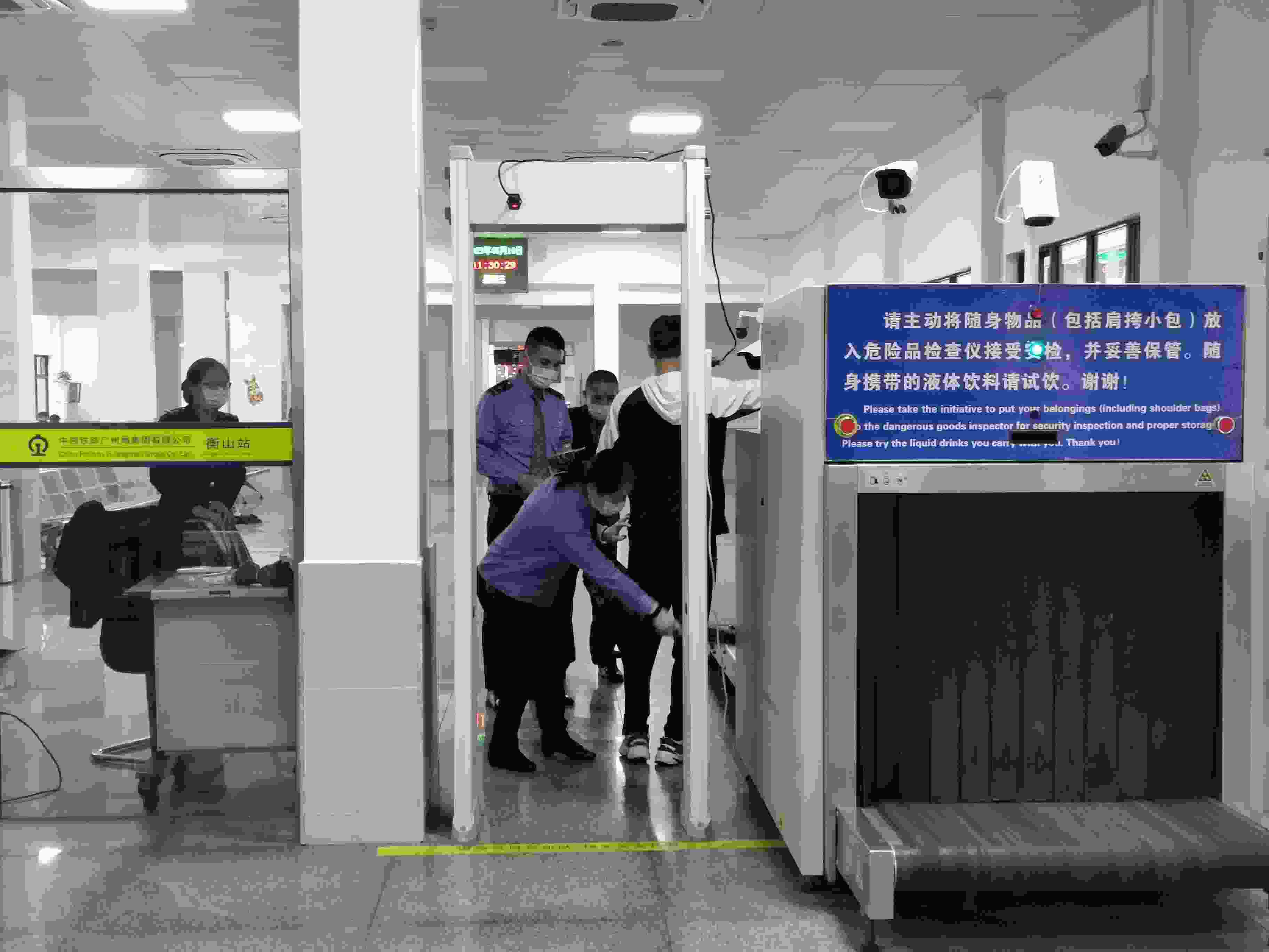 5月10日,衡山站的工作人員對(duì)進(jìn)站旅客進(jìn)行安檢。
