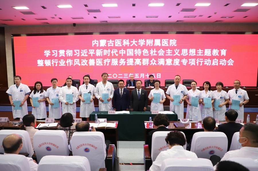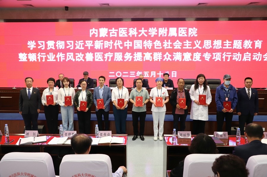 啟動會上,內(nèi)蒙古醫(yī)科大學(xué)黨委委員、附屬醫(yī)院黨委書記張立東,醫(yī)院黨委委員、紀(jì)委書記劉玉龍與專項行動工作小組組長簽訂責(zé)任狀,并為10名社會監(jiān)督員頒發(fā)聘書。
