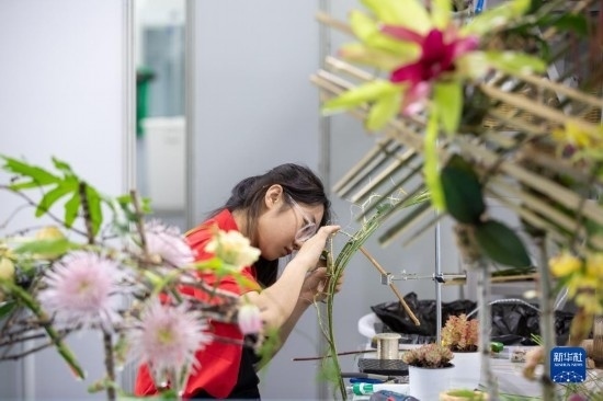6月6日,選手在進(jìn)行花藝項(xiàng)目比賽。