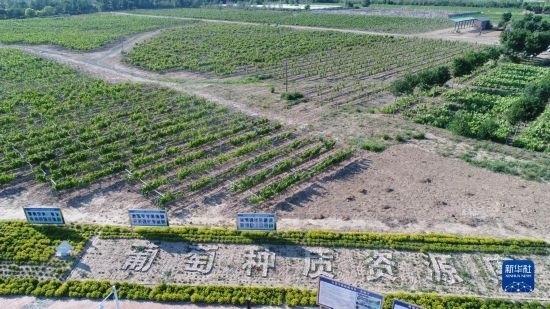 6月21日在河北省懷來縣拍攝的葡萄種質(zhì)資源庫(kù)(無人機(jī)照片)。