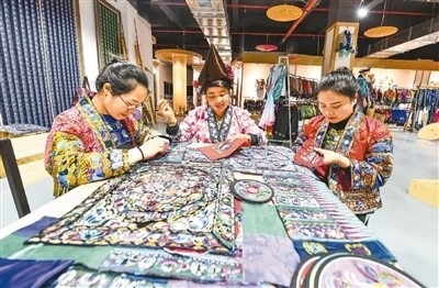 在苗族聚居的貴州,近年來將這一文化瑰寶作為產(chǎn)業(yè)大力推動發(fā)展,婦女們背著娃、繡著花、養(yǎng)活自己養(yǎng)活家,不僅用一針一線“繡”出美好生活,還將蘊藏著古老文化的苗繡巧妙融入時尚元素,形成產(chǎn)業(yè)融合互動。如今,古老的苗繡日益走進(jìn)大眾生活,煥發(fā)蓬勃生機(jī)。
