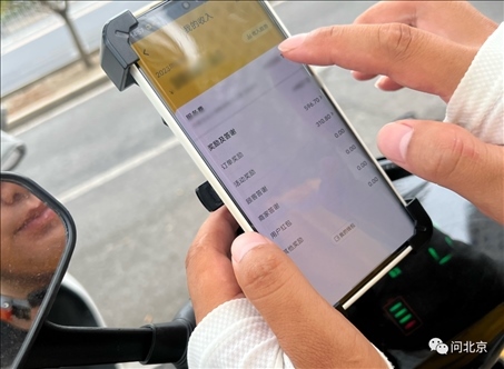 一名小哥向記者展示收入構成/三月攝