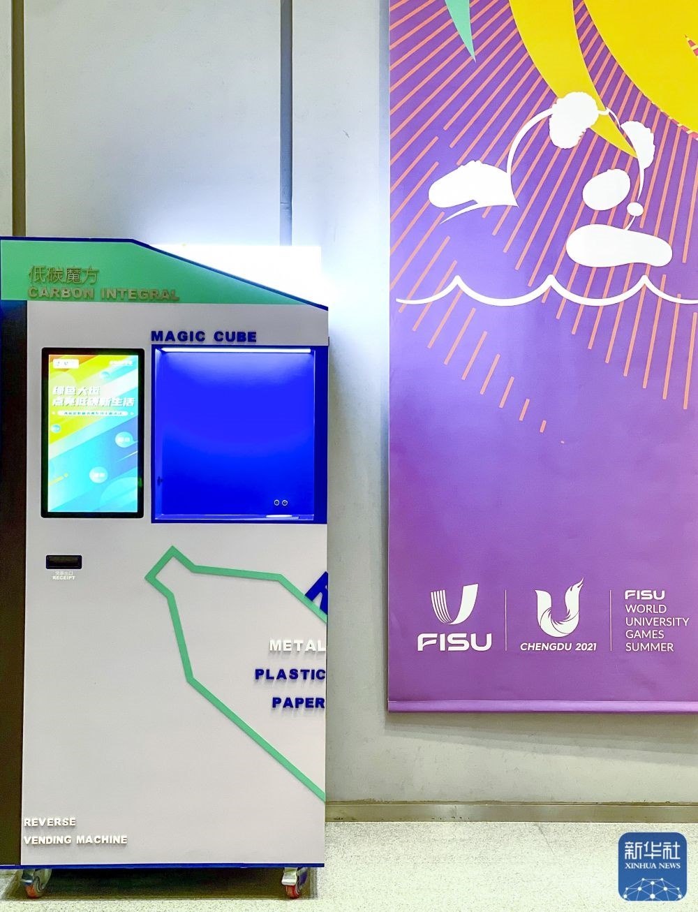 ↑這是6月28日在成都大運(yùn)會(huì)開幕倒計(jì)時(shí)30天活動(dòng)現(xiàn)場拍攝的“低碳魔方”。新華社記者 沈伯韓 攝