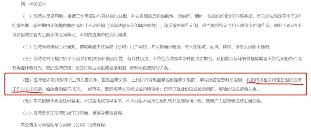 有媒體就此梳理發(fā)現(xiàn),全國多個(gè)地方的煙草局和煙草公司在招聘中,均提出該要求。其實(shí),翻看近些年各地?zé)煵菥值恼衅感畔⒖梢园l(fā)現(xiàn),列明回避制度是一個(gè)常規(guī)操作。上述規(guī)定出自《國家煙草專賣局中國煙草總公司關(guān)于印發(fā)煙草行業(yè)招聘工作管理辦法的通知》第十一條,早就存在,且非常明確。