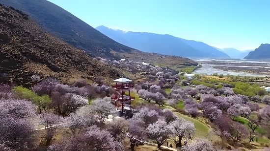 每年春天,這里有1200多株百年以上野生桃樹競相綻放,花香滿園。嘎拉村因此被譽(yù)為“桃花第一村”,吸引了全國各地的游客前來一睹“雪映桃花源”的美景。2023年上半年,嘎拉村通過舉辦桃花文化旅游節(jié)獲得341萬元收入。