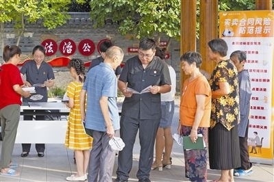 圖⑧:送法入村。圖為楓橋法庭通過設(shè)立“糾紛移動(dòng)普法站”,來到轄區(qū)各村鎮(zhèn)普法宣傳,送上普法小手冊(cè),提醒村民用好法律知識(shí),提前防范各類風(fēng)險(xiǎn)。
