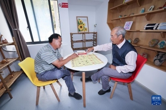 10月26日,兩位老人在杭州市富陽(yáng)區(qū)湖源鄉(xiāng)居家養(yǎng)老服務(wù)中心下棋。