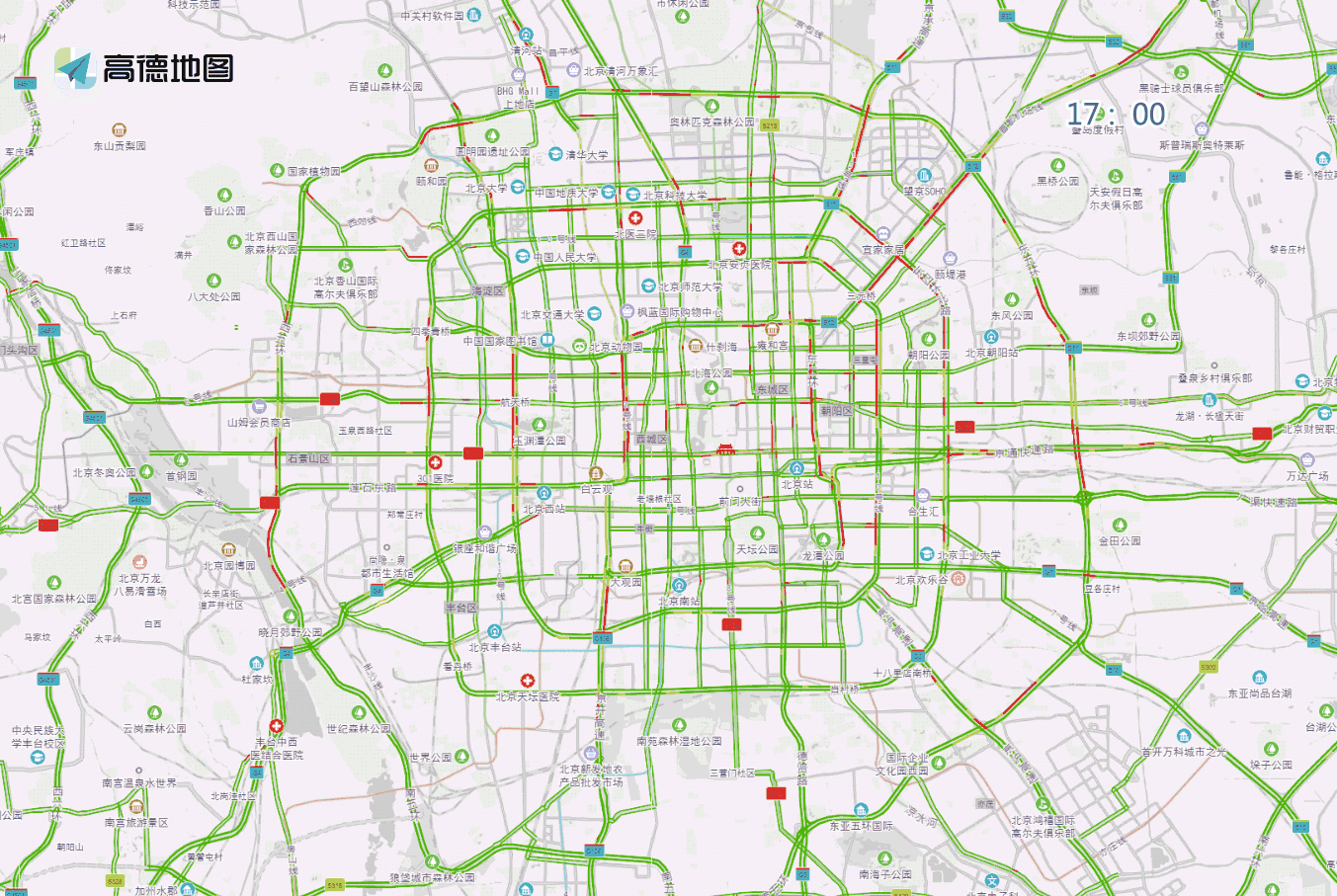 工作日早間至上午時(shí)段,預(yù)計(jì)兒研所、兒童醫(yī)院、北醫(yī)三院、北京醫(yī)院、同仁醫(yī)院、西苑醫(yī)院、積水潭醫(yī)院等醫(yī)院門(mén)前及周邊道路車(chē)流量較大,高峰時(shí)段預(yù)計(jì)為7至13時(shí)。