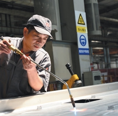 周晶輝正在對(duì)鋁合金車體進(jìn)行焊接。金萬寶攝