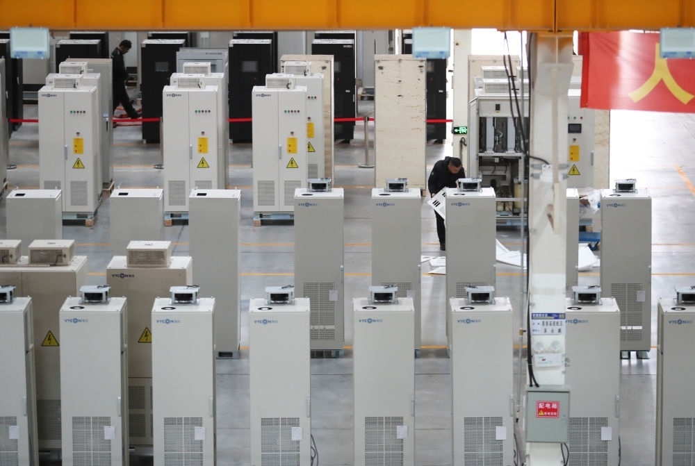 在沈陽微控新能源技術有限公司,工人在車間工作(2023年11月29日攝)。新華社記者 楊青 攝