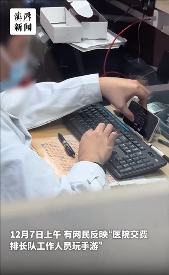 ·上海華山醫(yī)院收費(fèi)窗口員工上班時(shí)玩手游?院方稱(chēng)已暫停其工作。