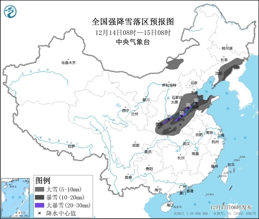除寒潮天氣外,大范圍的雨雪天氣也將上線。預計12月13日至15日,新疆北部、西北地區(qū)東部、內蒙古、華北、黃淮中北部、東北地區(qū)中南部及青藏高原東部有小到中雪,部分地區(qū)有大到暴雪,局地有大暴雪;黃淮南部、江淮、江漢、重慶北部及江南等地部分地區(qū)有中到大雨、局地暴雨。