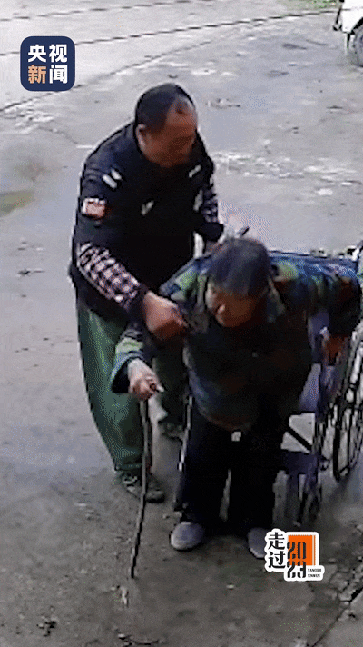 外賣小哥上前幫老爺爺推車