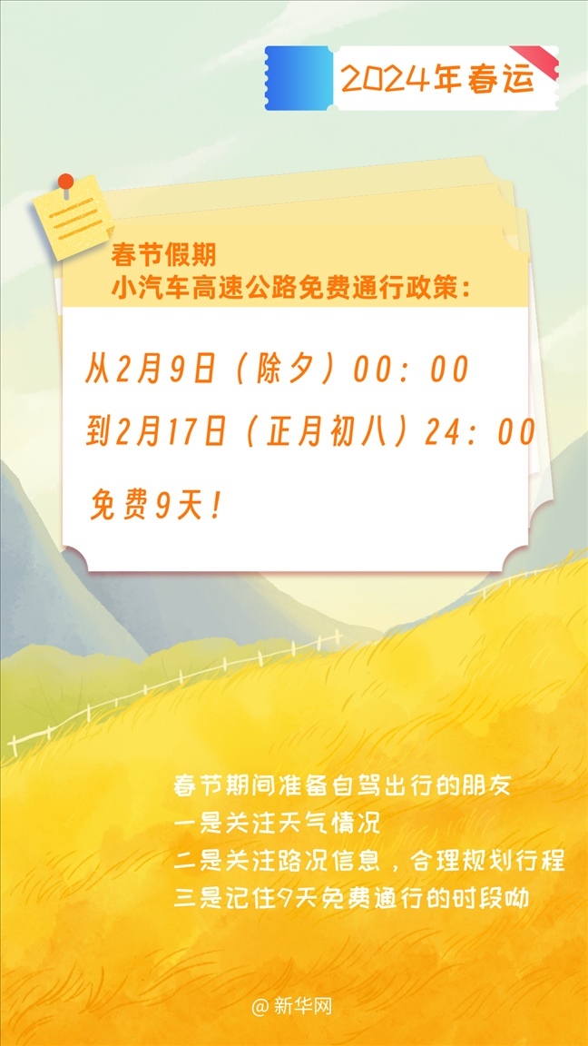 是從2月9日(除夕)00:00到2月17日(正月初八)24:00,免費(fèi)9天!