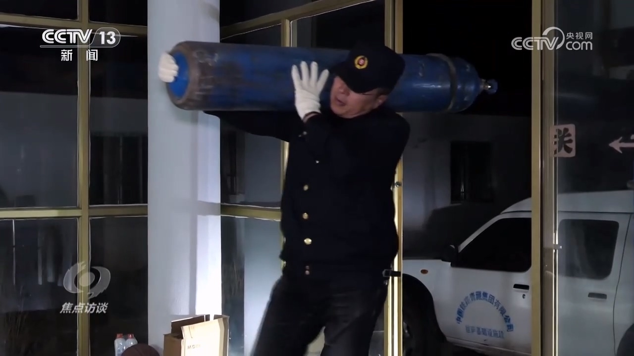 肖保林家在西寧,而工作單位位于拉薩,他的許多同事都是這樣,在遠(yuǎn)離家庭的高原上工作。每次送氧都將是一次遠(yuǎn)途旅行,所以天不亮就開始裝車。一只氧氣瓶重量達(dá)120斤,一車要裝80瓶,氧氣屬于危險(xiǎn)品,裝車時(shí)必須輕搬輕放,不能碰撞。