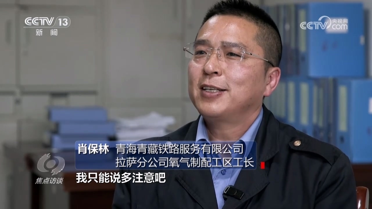 青海青藏鐵路服務(wù)有限公司拉薩分公司經(jīng)理王文海:“制氧這塊,5年之內(nèi)換了5位同志,都因?yàn)樽约旱纳眢w情況不太好,自己缺氧還得給別人送,扛著氧氣瓶太累。”