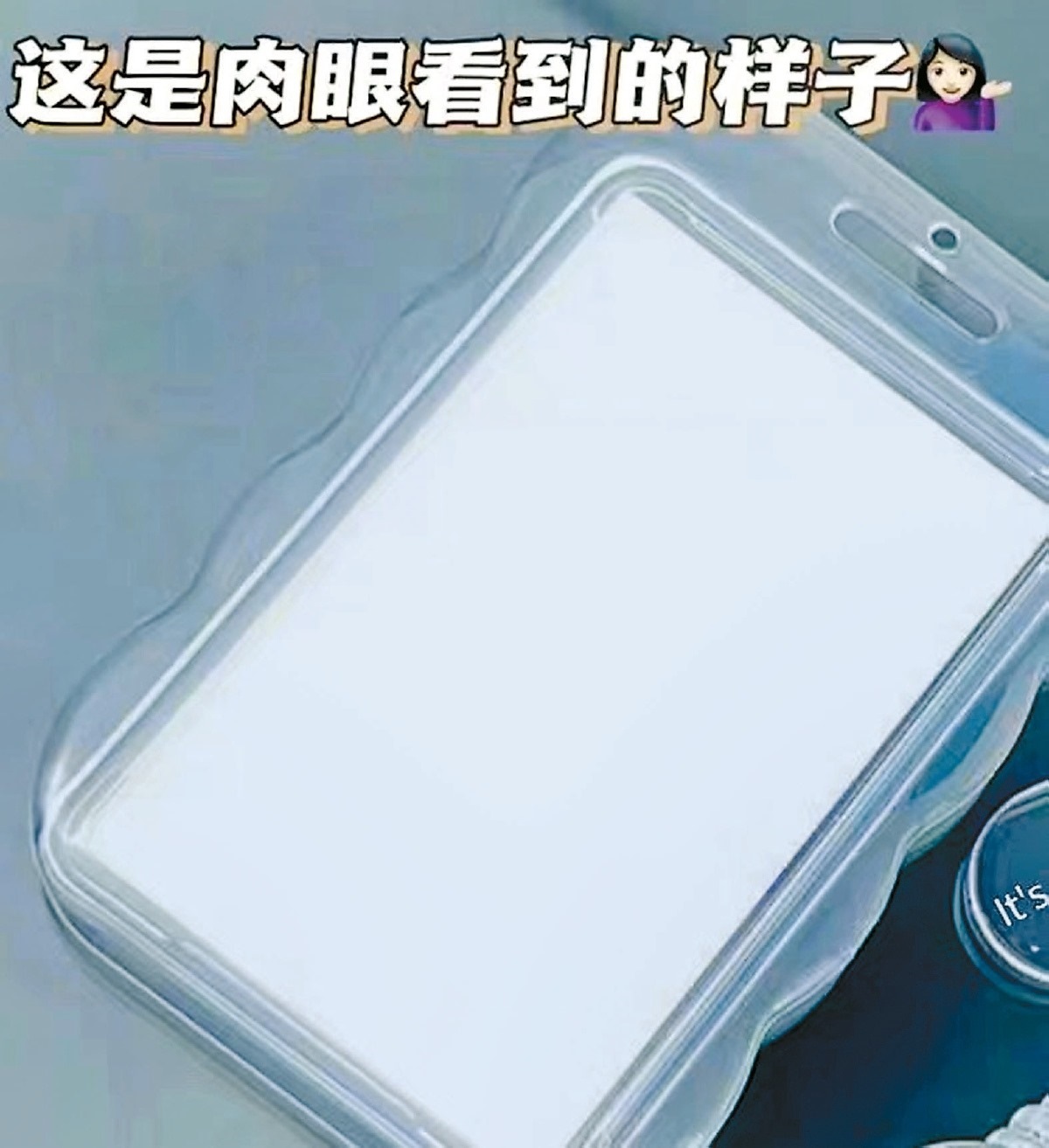 商家還表示,卡包中可以放上真實的飯卡等,遮蓋住手機(jī)的背面,手機(jī)正面的屏幕在外人看來,是純粹的白色,必須戴上眼鏡才能看到屏幕上的內(nèi)容。
