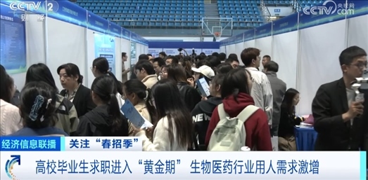在江蘇南京的一場(chǎng)校園招聘會(huì)上,記者看到,生物醫(yī)藥行業(yè)的招聘企業(yè)占據(jù)了整場(chǎng)招聘會(huì)接近一半的展位。蔣素梅是一家醫(yī)藥研發(fā)企業(yè)的人力資源負(fù)責(zé)人,剛到招聘現(xiàn)場(chǎng),就有不少學(xué)生前來投遞簡(jiǎn)歷。