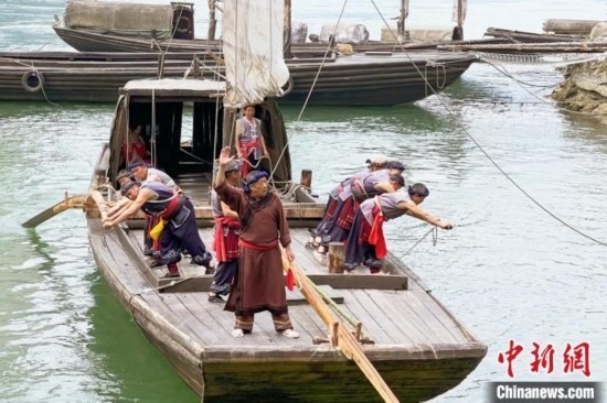 峽江號(hào)子表演。郭曉瑩 攝