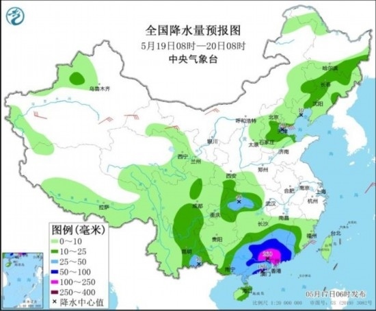 圖3 全國降水量預報圖(5月19日08時-20日08時)