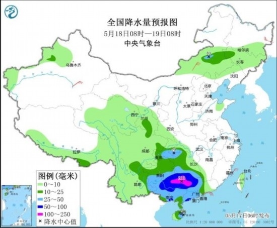 圖1 全國降水量預報圖(5月17日08時-18日08時)