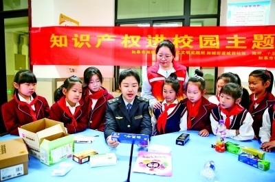 江蘇如皋市版權(quán)局聯(lián)合市場(chǎng)監(jiān)督等部門,圍繞商標(biāo)權(quán)、專利權(quán)等開(kāi)展“知識(shí)產(chǎn)權(quán)進(jìn)校園”宣傳教育活動(dòng)。新華社發(fā)