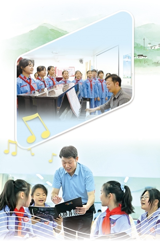 上圖:江西興國(guó)縣蕭華紅軍小學(xué)小紅星合唱團(tuán)正在練習(xí)。李 玲攝 下圖:湖北宣恩縣博雅實(shí)驗(yàn)學(xué)校土家娃合唱團(tuán)負(fù)責(zé)人廖光新在指導(dǎo)學(xué)生。陳緒開(kāi)攝