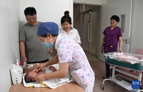 6月1日,在西安國際醫(yī)學(xué)中心醫(yī)院新生兒科病房,護(hù)士幫助新生兒翻身。