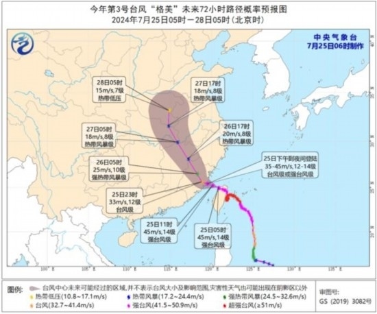 今年第3號(hào)臺(tái)風(fēng)“格美”未來72小時(shí)路徑概率預(yù)報(bào)圖(7月25日05時(shí)-28日05時(shí))