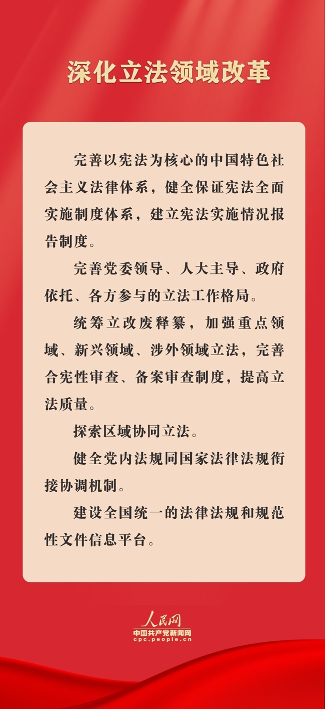 7月21日,《中共中央關(guān)于進(jìn)一步全面深化改革、推進(jìn)中國式現(xiàn)代化的決定》(以下簡稱《決定》)全文發(fā)布。其中對完善中國特色社會(huì)主義法治體系作出部署,重點(diǎn)圍繞深化立法領(lǐng)域改革、深入推進(jìn)依法行政、健全公正執(zhí)法司法體制機(jī)制、完善推進(jìn)法治社會(huì)建設(shè)機(jī)制、加強(qiáng)涉外法治建設(shè)等方面,提出了法治領(lǐng)域改革任務(wù)要求。
