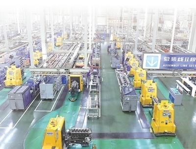 濰柴一號(hào)工廠總裝線Ⅱ段生產(chǎn)現(xiàn)場(chǎng)。以上圖片均為濰柴集團(tuán)提供