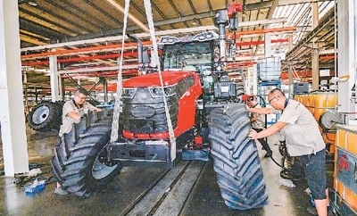 八月二十七日,山東青州經(jīng)濟(jì)開(kāi)發(fā)區(qū)一家大馬力拖拉機(jī)制造企業(yè)內(nèi),工人正在車間進(jìn)行裝配作業(yè)。王繼林?jǐn)z(人民視覺(jué))